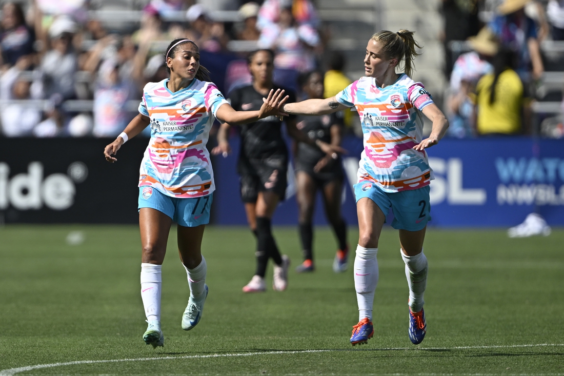 Alyssa Thompson recorded a brace to lift visiting Angel City to a 2-1 victory over the San Diego Wave on Saturday.