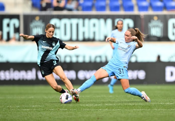 Gotham FC struck first in the 10th minute. Houston had a goal kick that Gotham players controlled with a few headers. The ball came to Esther, whose one-touch through ball clearing allowed Yazmeen Ryan to break away and score.