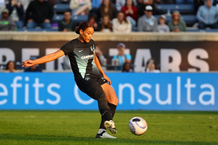 But moments later, the Courage won a scramble for the ball in the midfield and Denise O’Sullivan drilled a sharp pass upfield to Wingate. Angel City goalkeeper DiDi Haracic came out in an attempt to cut off the angle, but Wingate easily drilled a right-footed shot into the left corner of the net. It was Wingate’s second goal of the season.