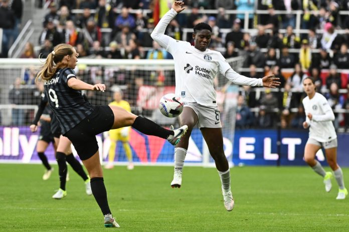 In the 82nd minute, Asisat Oshoala finally broke the scoreless draw, knocking in a right-footed shot from very close range to put Bay FC ahead 1-0 with minutes remaining. The ball came to her Penelope Hocking, who corralled a delivery from the corner and sent it to Oshoala to tap in her eighth goal of the season.
