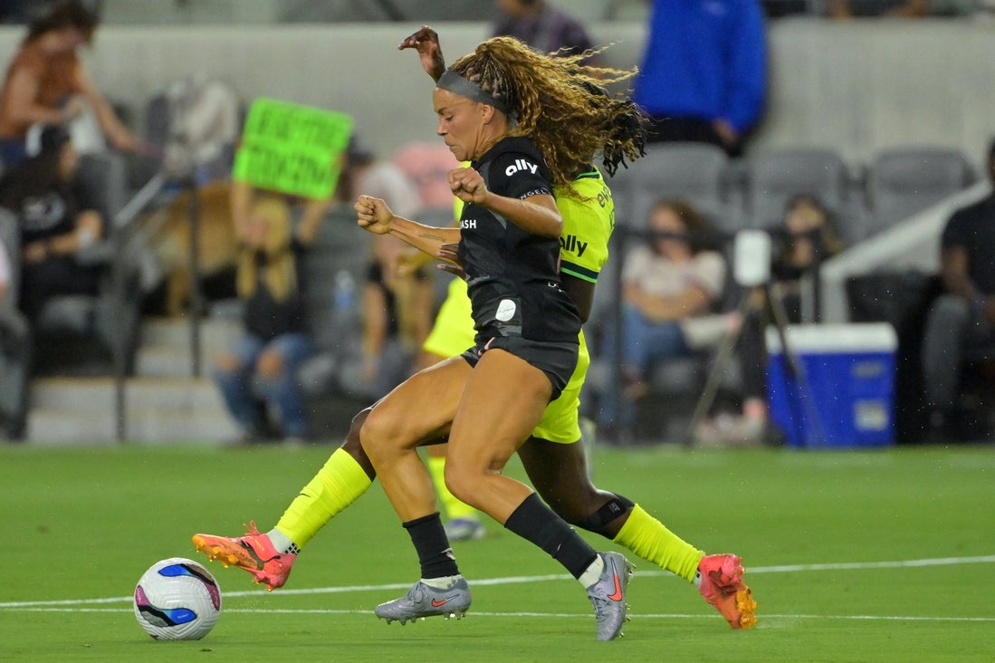 Angel City took a 2-1 lead in the 55th minute as Riley Tiernan sent a left-footed shot toward the net. Washington’s Tara McKeown quickly raised her right leg to try to block the shot, but the ball deflected off her foot and into the goal.