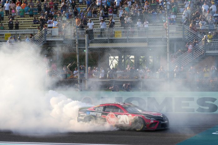 The race was held in front of a live audience at the NASCAR Hall of Fame in Charlotte. Racing legend Dale Earnhardt Jr. presented White with a massive trophy — and a bottle of Coke — following his victory.