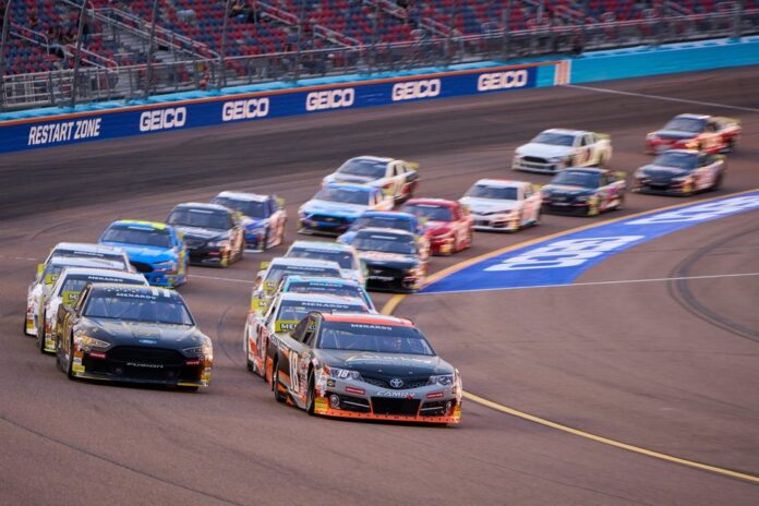 “I told (my crew chief and spotter) that we just gotta have a plan and we’re gonna stick with and we’re gonna make peace with it, and we decided if there was a caution with 10 to go we weren’t gonna pit,” Minter said of the decision to say out when the caution flew with 11 laps remaining.