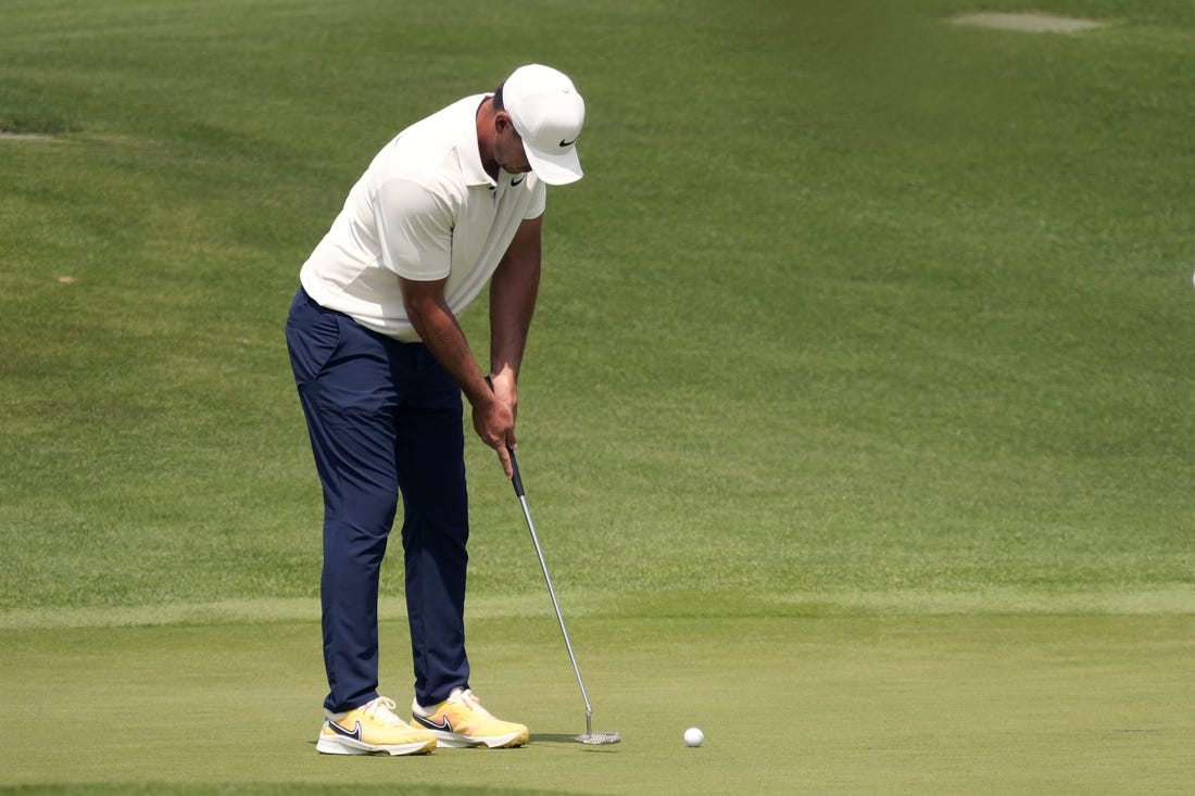 Defending champion Scottie Scheffler was 1-under for the tournament through two rounds. He was 1-over on both the front side and back side Friday, hurt mostly by a double-bogey on No. 9.