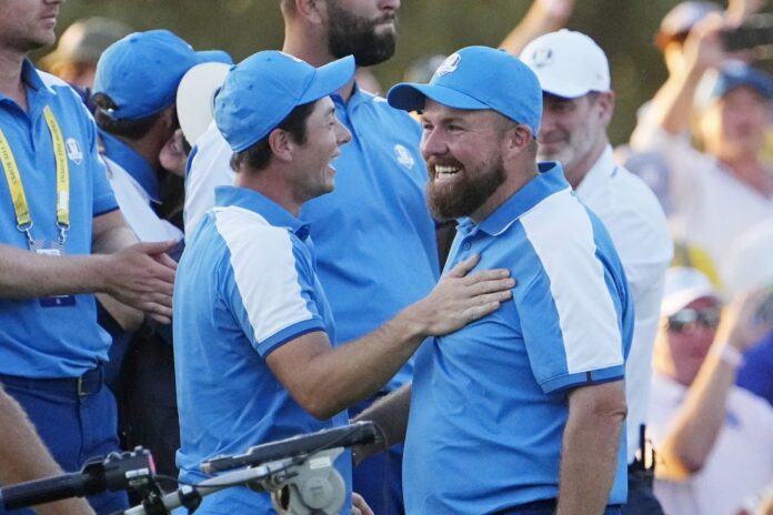 “We’re in a great position,” Team Europe captain Luke Donald of England said on the NBC broadcast. “It’s time to take care of business, go out early and put some blue on the board. They have to win a lot more matches than we do. We’re in the driving seat, we’re at home, we’re going to have the crowd behind us and again, I feel very good about my guys.”