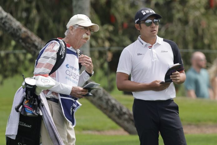Mike “Fluff” Cowan, Pan’s caddie, slipped and fell on the third hole in the rainy conditions at Hamilton Golf and Country Club. The 76-year-old sustained “non-serious” injuries, per a PGA Tour official, and was shown watching the action from a golf cart.