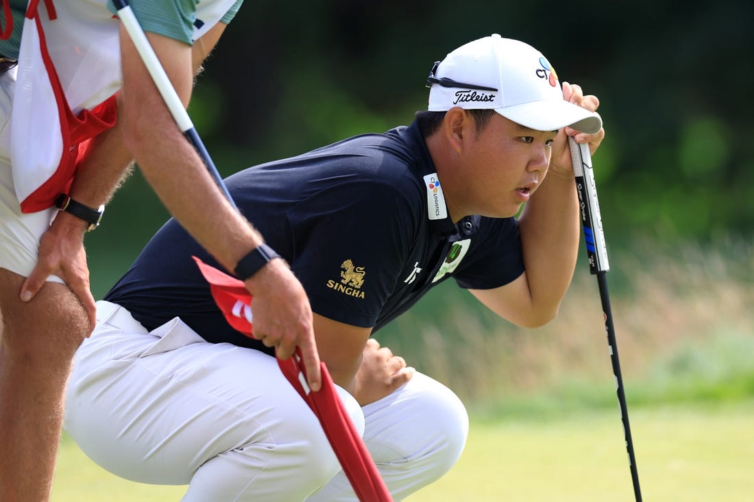 Kim started Friday on the back nine and made his only bogey of the day at the par-3 12th before draining three birdies. He added four more on the front nine, including three straight at Nos. 6-8.