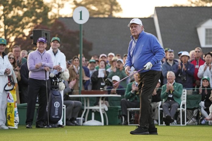 “When I walk up, make sure I don’t trip,” Nicklaus, 85, said when asked about his plan for the No. 1 tee. “Second one is make sure I get the tee in the ground without falling over, and the third one is just don’t kill anybody. Don’t laugh too much about that; that’s actually the thoughts that I have.