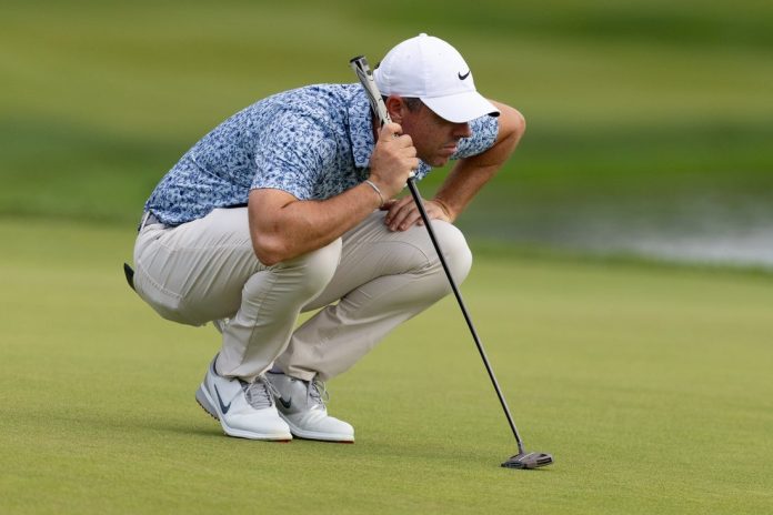 After a 332-yard drive, McIlroy reached the green in two and had a putt for birdie on the par-4 first. He took five there after a three-putt for bogey, had another bogey at No. 5 and found a fairway bunker on the par-4 15th for a trio of boxes on the scorecard that tallied to a score of one-over with three holes to play.