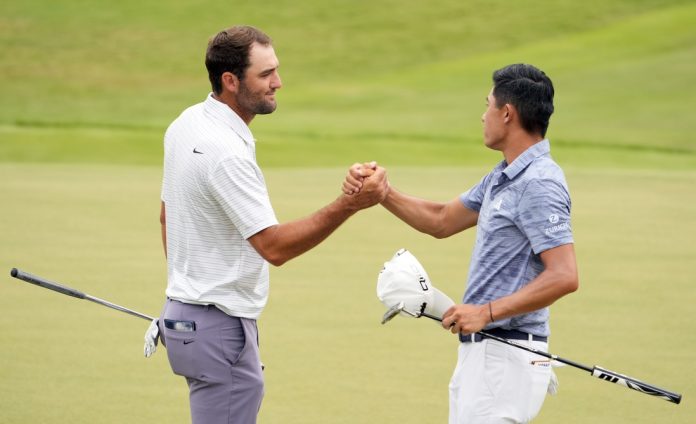 But Scheffler escaped a fairway bunker at No. 16 and drained a 24-foot putt, center cup, to grow the margin to five. He and Morikawa went on to birdie each of the final two holes.