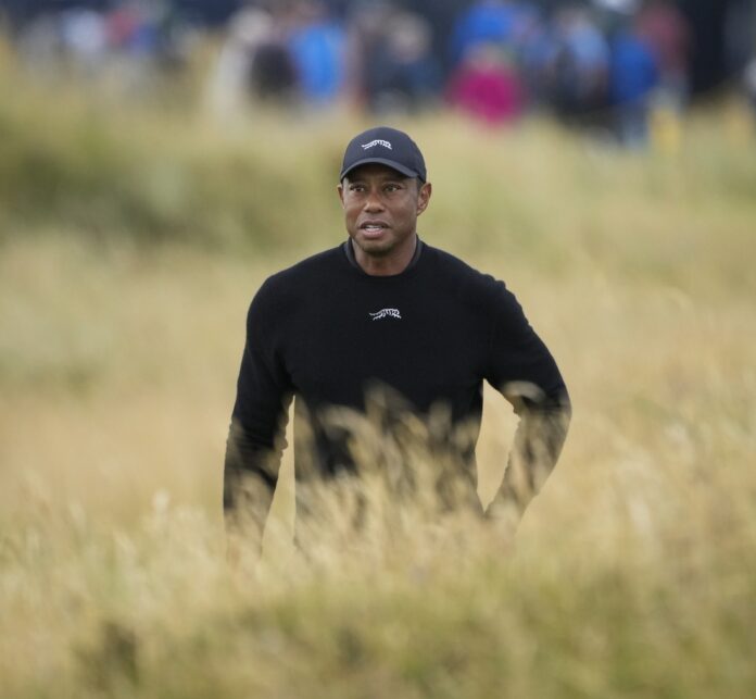 At the par-4 11th, Woods’ drive sailed far right near the train tracks, and he had to take an unplayable lie. The ensuing double bogey pushed him to 6 over, and he would bogey the next hole before stroking a 7-foot birdie putt at the 13th to get a shot back.