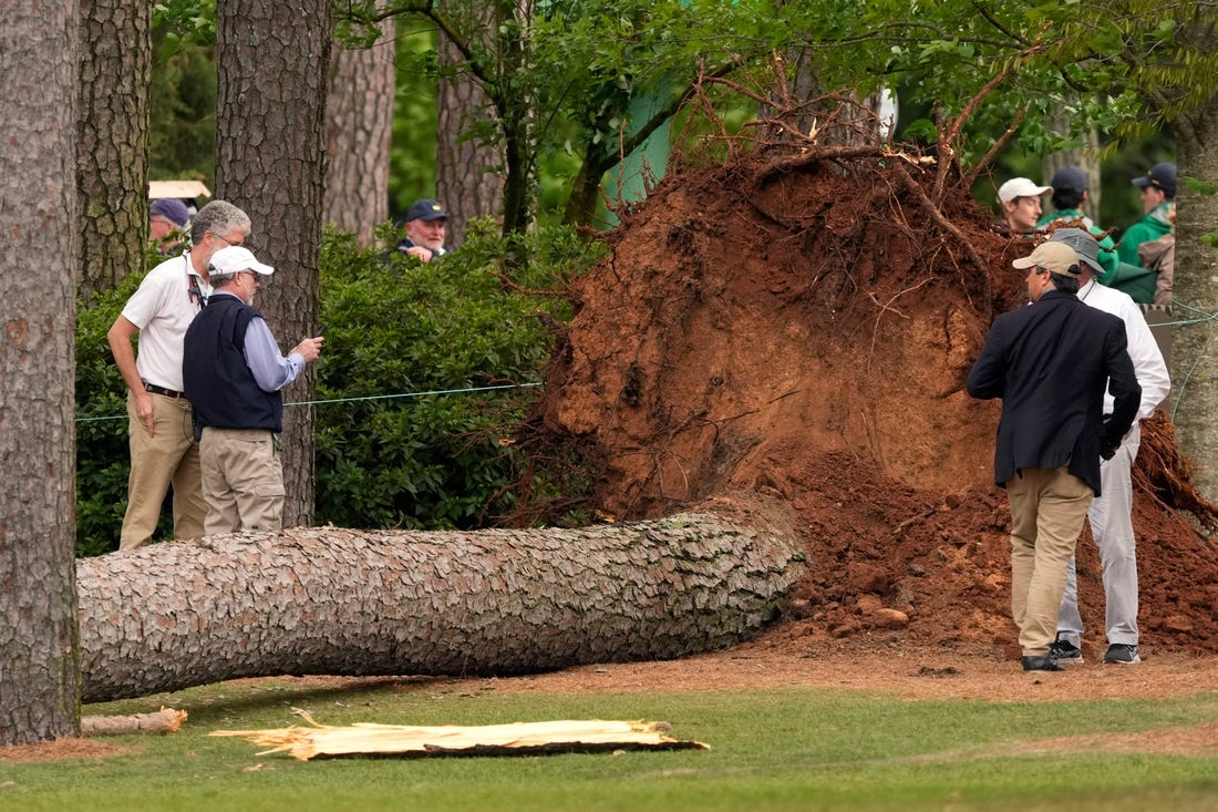 “It sounded like a grandstand blew over, super loud,” said golfer Sergio Garcia of Spain, who was on the green at the 15th. “Two trees fell down from the roots and took another one on the way down. People scattered around them but there was one woman that the trees fell around her and somehow she didn’t get hurt. Thank God.”
