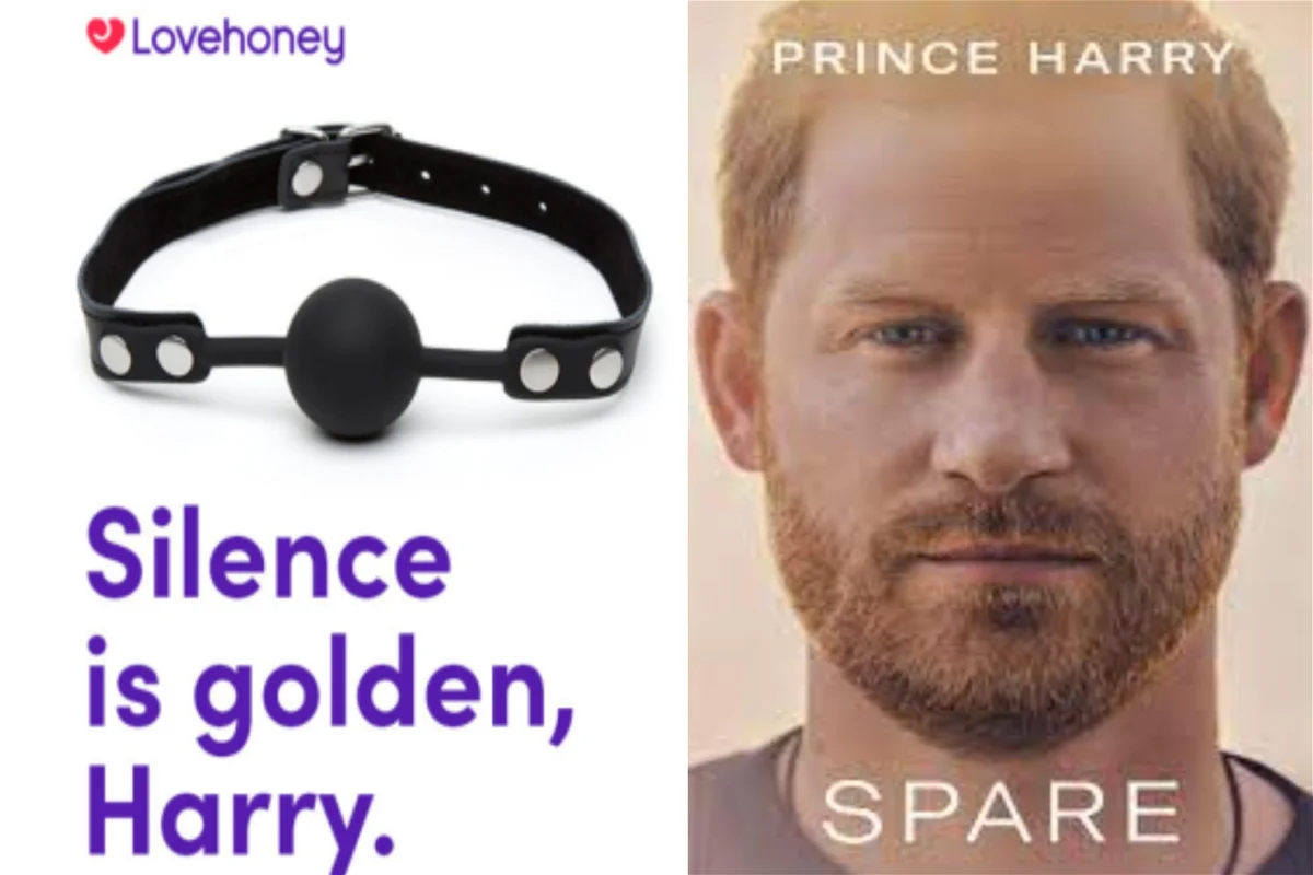 In the days following the prince’s numerous interviews in support of his memoir, Spare, which was released on January 10th, Lovehoney, a top sexual wellness company in the U.K., debuted its new advertisement with the slogan “Silence is golden, Harry,” which features a ball gag.