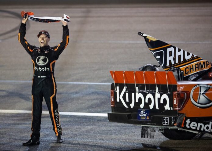 In the end, ThorSport Racing’s Ben Rhodes claimed his second series championship in the past three years with a hard-earned fifth-place finish in the No. 99 Ford. Meanwhile, McAnally Hilgemann Racing’s Christian Eckes raced to his fourth win of the season by a slight .421-seconds over rookie teammate Jake Garcia in four dramatic overtime periods.