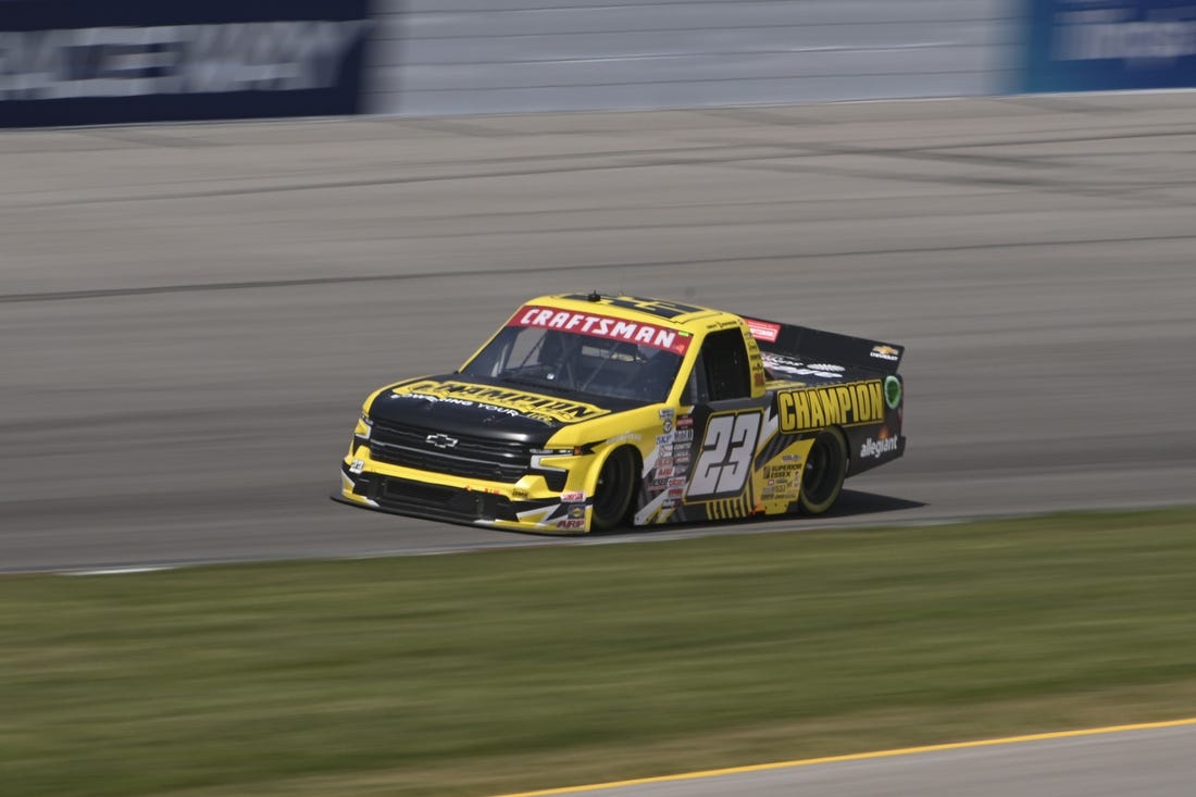 MADISON, Ill. — Taking advantage of Ty Majeski’s and Zane Smith’s wreck at the front of the field, Grant Enfinger grabbed his second NASCAR Craftsman Truck Series victory of the season in Saturday’s Toyota 200 at World Wide Technology Raceway.