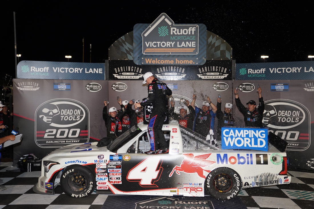 Runner-up last fall at Darlington in a race he thought he should have won, Nemechek led a race-high 69 laps in triumphing for the first time at the Lady in Black and the 12th time in his career. In winning the pole earlier in the day, he was .432 seconds faster than second-place qualifier Ty Majeski.
