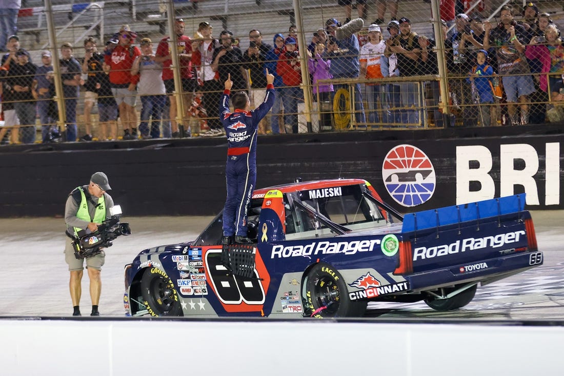 Streaking away from Zane Smith after a restart with 12 laps left in the NASCAR Camping World Truck Series’ Round of 8 playoff race, Majeski scored the first NASCAR national series victory of his career and claimed the first berth in the Nov. 4 Championship 4 finale at Phoenix Raceway.