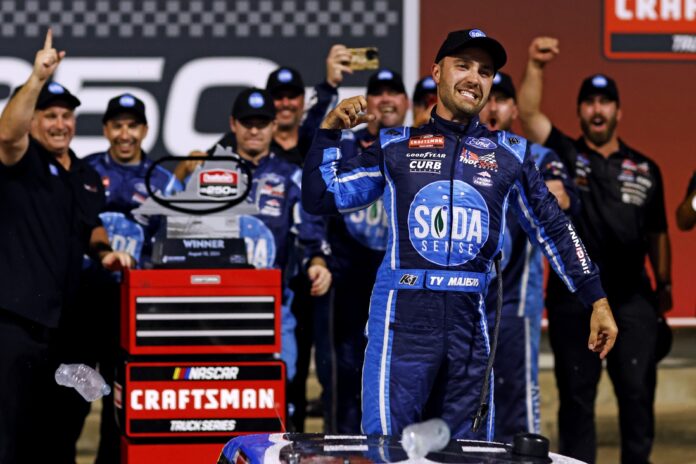 RICHMOND, Va. — Ty Majeski took the lead on a restart with eight laps remaining in the NASCAR CRAFTSMAN Truck Series regular season finale Clean Harbors 250 at Richmond (Va.) Raceway to hoist his second consecutive race trophy.