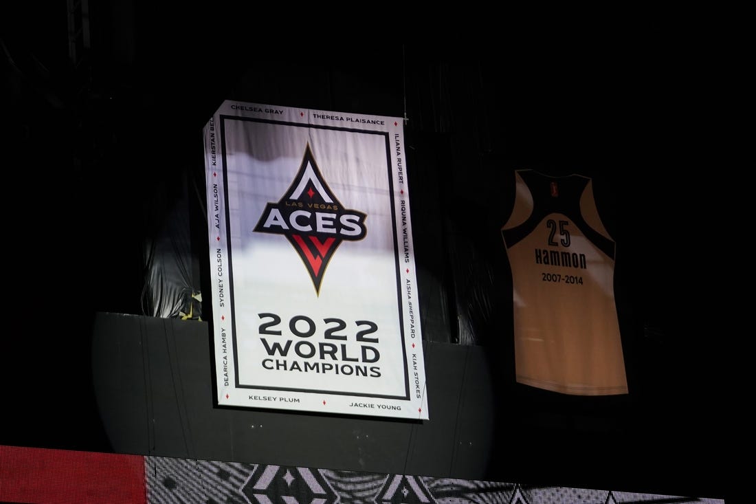 The Las Vegas Aces collected their championship rings and unveiled their banner commemorating last year’s WNBA title, then went on their home court and cruised to a 93-65 blowout of the visiting Los Angeles Sparks on Saturday night.