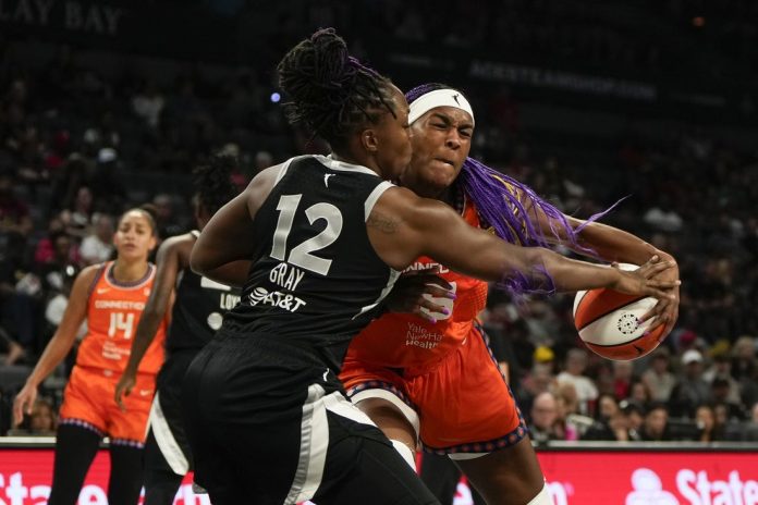 A’ja Wilson’s 32 points and career high-matching 20 rebounds helped the Las Vegas Aces to their fourth straight win with Sunday’s 94-86 defeat of the visiting Connecticut Sun.