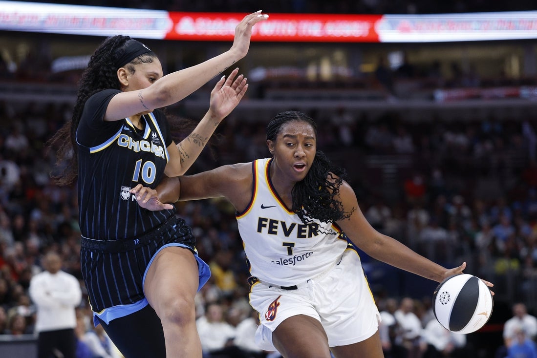 With Clark watching from the bench Saturday at the United Center in Chicago, Kelsey Mitchell led the way with 17 points while the Fever used a 27-point third quarter to pull away from the Sky for a 79-52 victory.