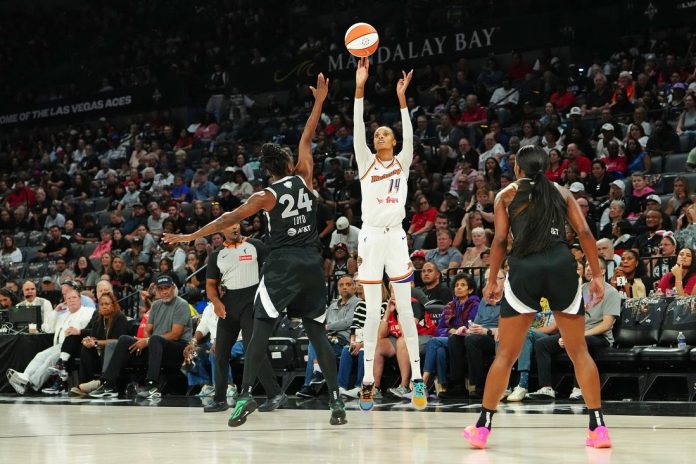 Momentum shifted early in the fourth quarter. Las Vegas trailed 76-70 with 8:23 remaining when Phoenix’s Satou Sabally was assessed a technical foul for spiking the ball after being whistled for her fifth foul of the night. That incident kick-started a 17-6 Aces run.