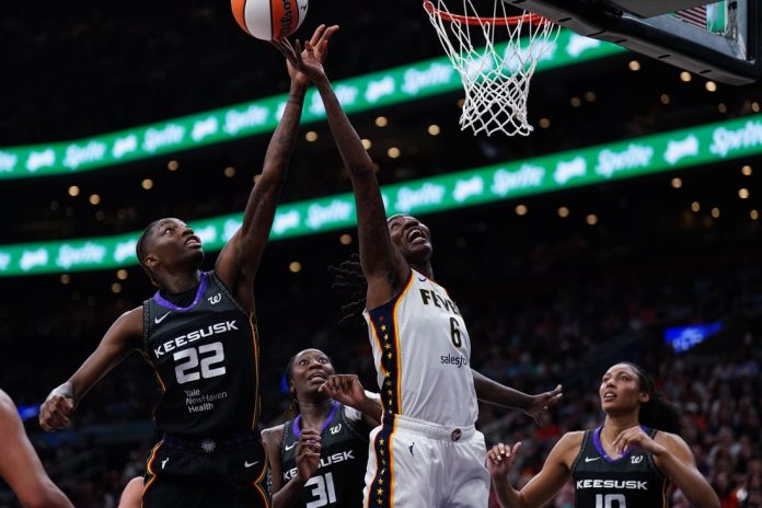 Indiana led 56-51 after Mitchell’s basket with 3:59 left in the third quarter. The Sun rallied to forge a 60-60 tie on Aneesah Morrow’s basket with 57.1 seconds left before Boston’s hoop with 41.6 seconds to go allowed the Fever to hold a 62-60 lead entering the final stanza.