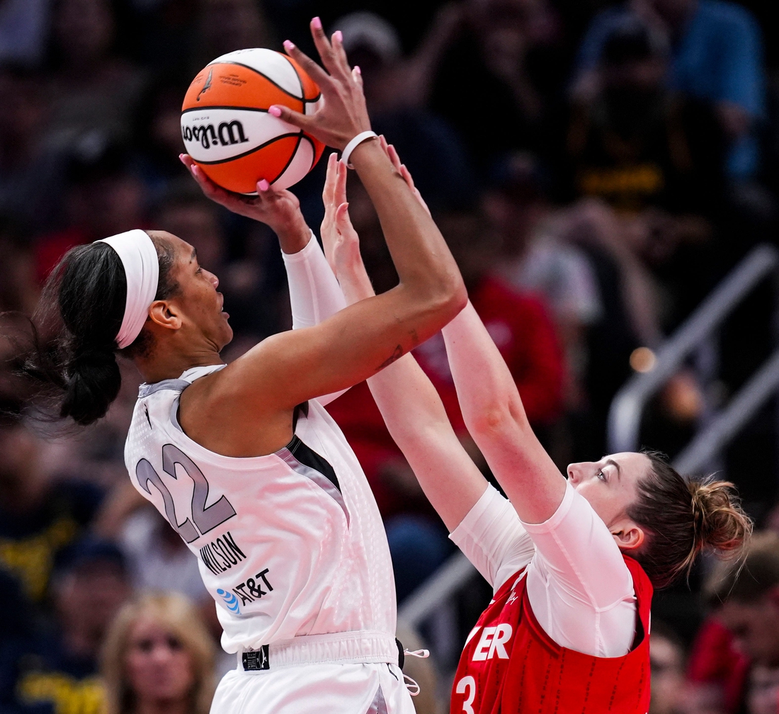 A’ja Wilson, making a push for her third career WNBA MVP award, posted 21 points and seven rebounds in that win over Seattle — modest numbers compared to her regular-season averages of 26.9 points (league high) and 11.9 rebounds per game.