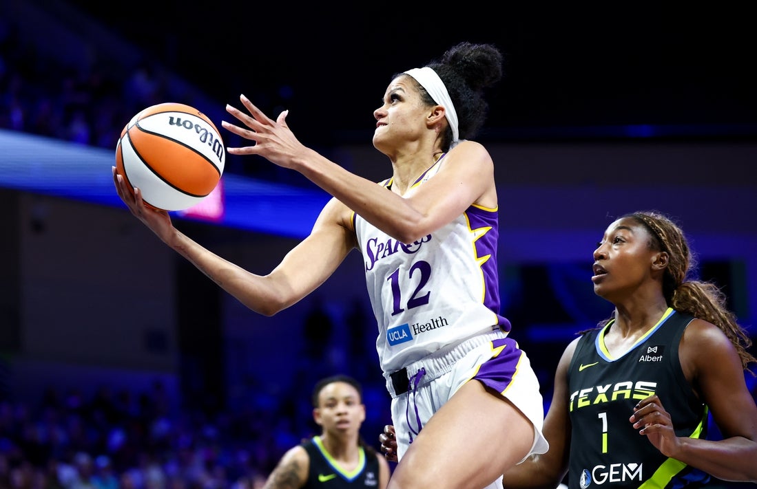 Los Angeles led by just three points at halftime before expanding its advantage to 80-68 heading into the fourth quarter. Plum’s 3-pointer with 8:11 to play pushed the Sparks’ margin to 15 points, but Dallas responded, drawing to within 95-91 when Aziaha James’ layup with 1:54 left capped an 11-2 run.