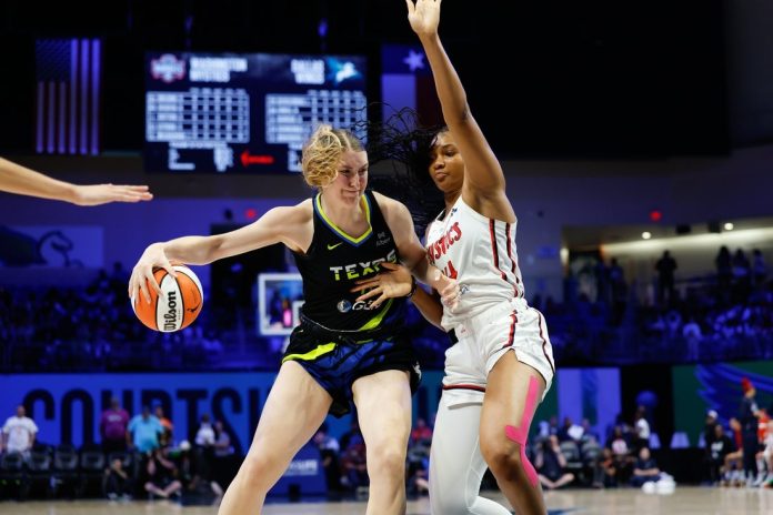 Washington narrowed Dallas’ lead to 28-27 in the second quarter before the Wings scored 13 unanswered points. Bueckers cashed a three-pointer from the wing and drew a foul, converting the four-point play with 2:47 remaining in the first half.
