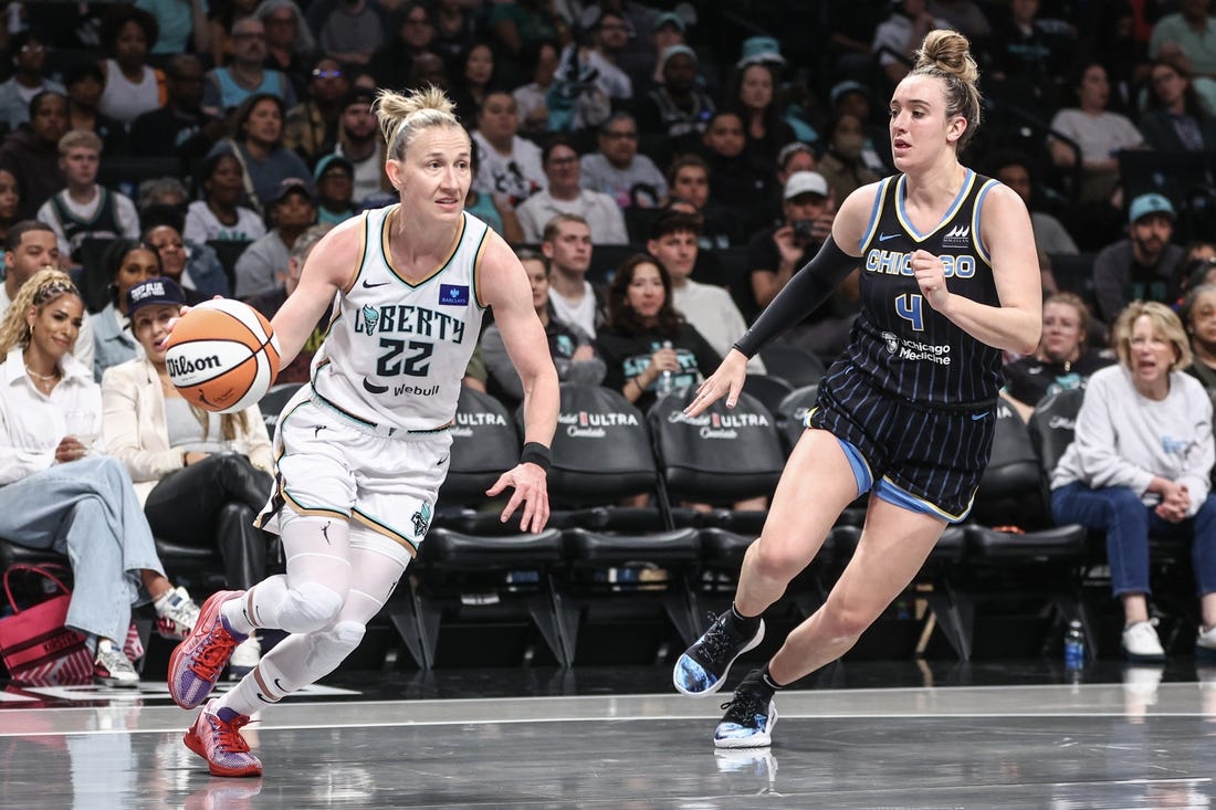 After Stewart’s 3 evened the game at 56 with 1:55 left, the Sky took a 63-59 lead into the fourth. New York regained the lead when Ionescu found Jonquel Jones for a layup that made it 68-67 with 7:46 to go, but the Sky scored the next six points, including a free throw and a bucket by Reese.