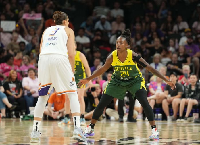 Seattle was down 18 midway through the second quarter but charged back to take its first and only lead of the night at 65-64 when Skylar Diggins-Smith hit a pull-up jumper with 8:26 to play. The Aces outscored the Storm 21-7 from there, ending Seattle’s four-game winning streak.