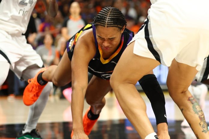 Las Vegas guard Jackie Young was called for a loose-ball foul on the play. Sabally spent several minutes on the floor and needed help from teammates and staff to leave the court. She totaled 24 points, five rebounds and three assists in 32 minutes before her early exit.