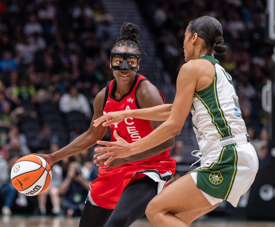 The Storm moved her to Las Vegas as part of a three-team trade on Feb. 1. She averaged 19.7 points, 4.5 rebounds, 3.6 assists and 1.4 steals last season.