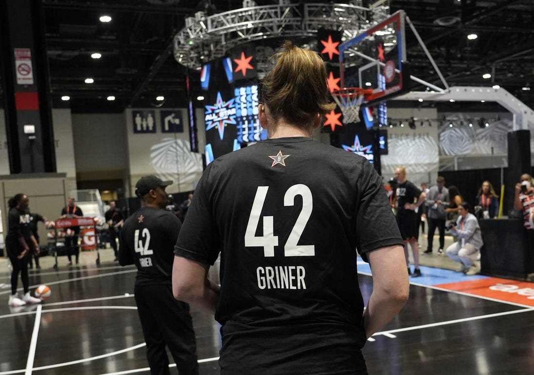 Her team, the Phoenix Mercury, played the Connecticut Sun on Thursday night. Before the game, the two teams joined at midcourt in Uncasville, Conn., for 42 seconds of silence in honor of Griner, who wears No. 42 on her WNBA jersey.