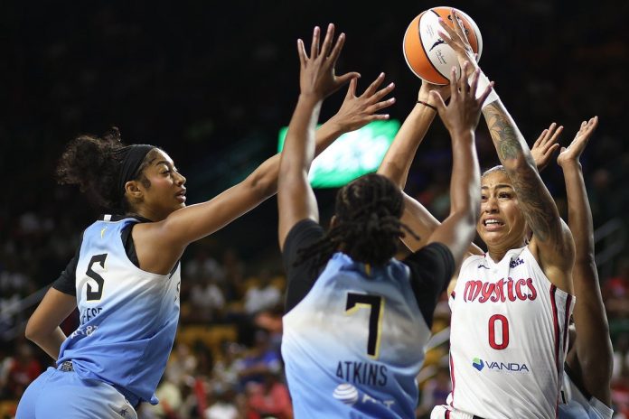 Austin missed two free throws, but secured the rebound after the second attempt and ended up converting on a go-ahead shot from the low post with 21.1 seconds to play. Angel Reese countered with a pair of free throws to pull the Sky even before Austin’s final foul shots.