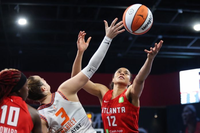 Atlanta (3-2) was without not only Jordin Canada, who has been out all season, but also starters Brittney Griner and Te-Hina Paopao. Paopao suffered a facial injury in Atlanta’s win over Dallas on Saturday, while Griner was announced shortly before the game as out of action due to a knee injury.