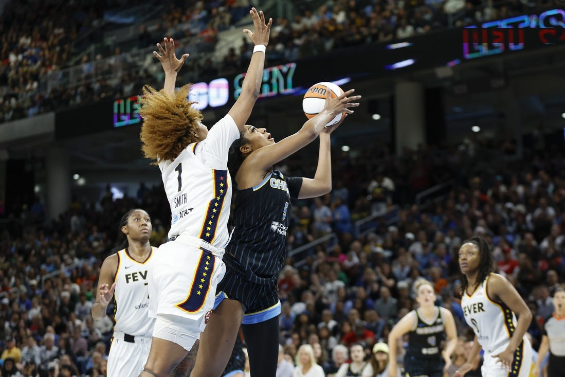 Chicago rookie Angel Reese is making her case as the league’s most promising frontcourt rookie, but she has never faced the defending two-time champion Aces and their super-star center A’ja Wilson.