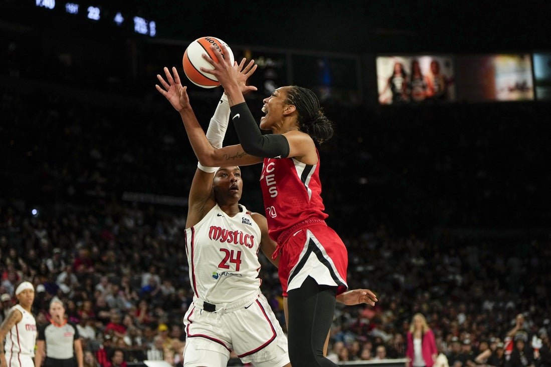 In a sharp-shooting first quarter, the Mystics took a 29-25 lead by hitting 57.9 percent from the floor, while the Aces shot 64.7 percent. Washington’s Jade Melbourne departed 1:12 into the contest and did not return after taking an elbow to the mouth from Gray and losing part of a front tooth.