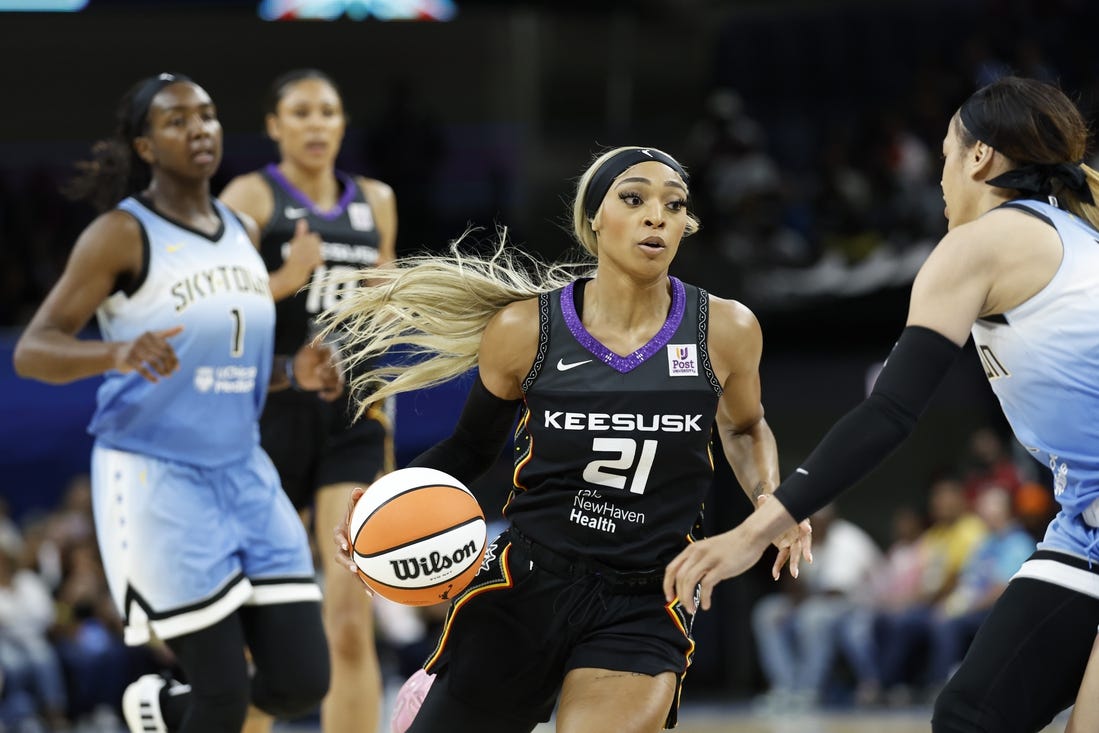 The Sky led by five points three times during the first quarter before the Sun made a push. Consecutive field goals by Rachel Banham, Alyssa Thomas and Bonner gave Connecticut a one-point lead before Carter’s last-second layup gave Chicago a 24-23 edge at the end of the quarter.