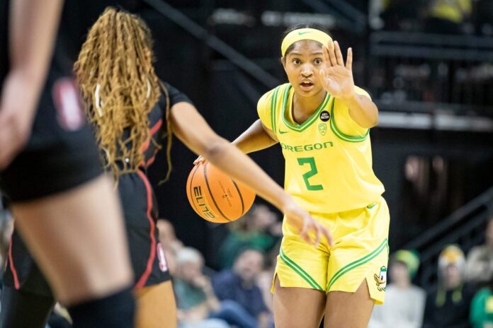 She started 35 games as a 2022-23 freshman at Oregon, averaging 10.3 points, 2.2 assists and 2.1 boards.