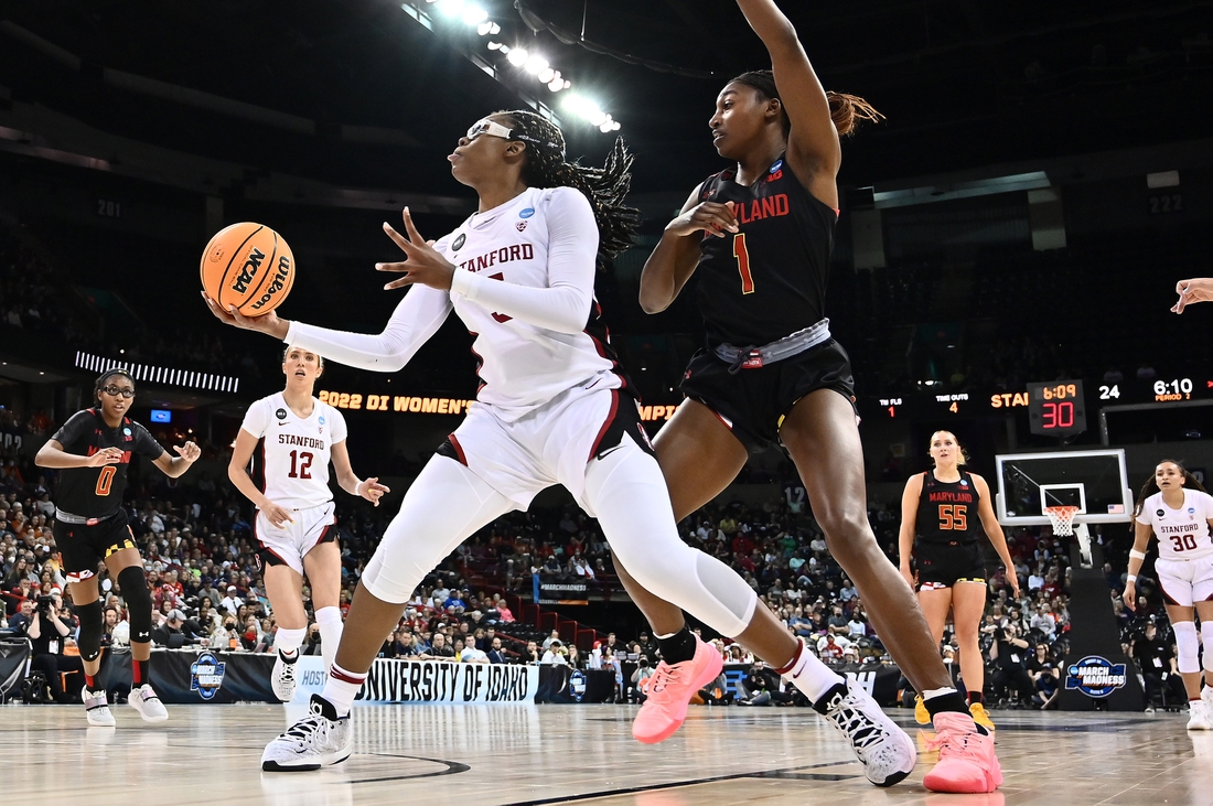 In losing to Stanford for the second time this year, fourth-seeded Maryland (23-9) got 25 points, nine rebounds and three blocks from Angel Reese. Diamond Miller added 11 points before fouling out.