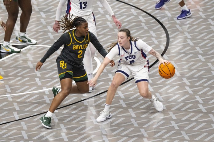 Hailey Van Lith has led TCU all season, and she did it again as No. 8 TCU defeated No. 17 Baylor 64-59 in the championship game of the Phillips 66 Big 12 Women’s Basketball Championship on Sunday at the T-Mobile Center in Kansas City, Mo.