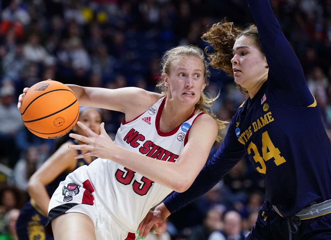 North Carolina State cut Notre Dame’s lead to 36-30 on a fast-break layup from Cunane, but Westbeld answered with a layup for the Fighting Irish with 48 seconds left in the half.