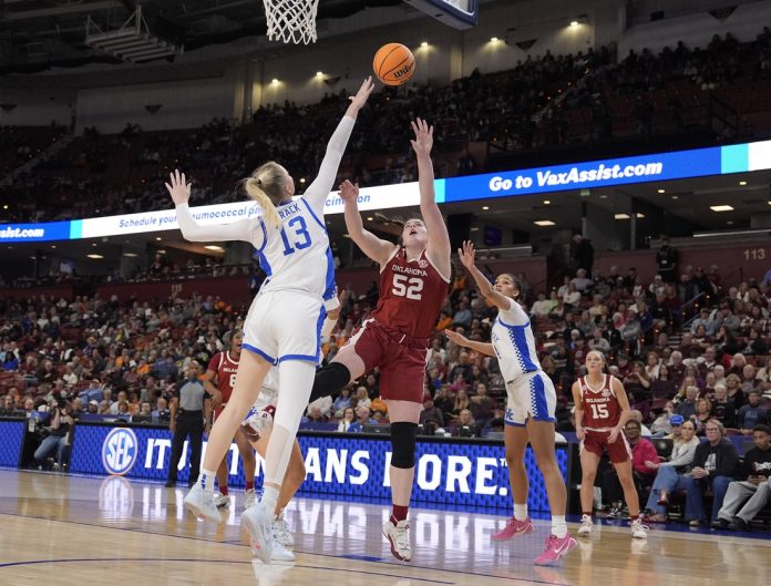 Payton Verhulst scored 16 and Sahara Williams had 13 for the fifth-seeded Sooners (25-6), who have won nine straight games going into their Saturday semifinal game against No. 5 and top-seeded South Carolina, which defeated Vanderbilt earlier Friday.