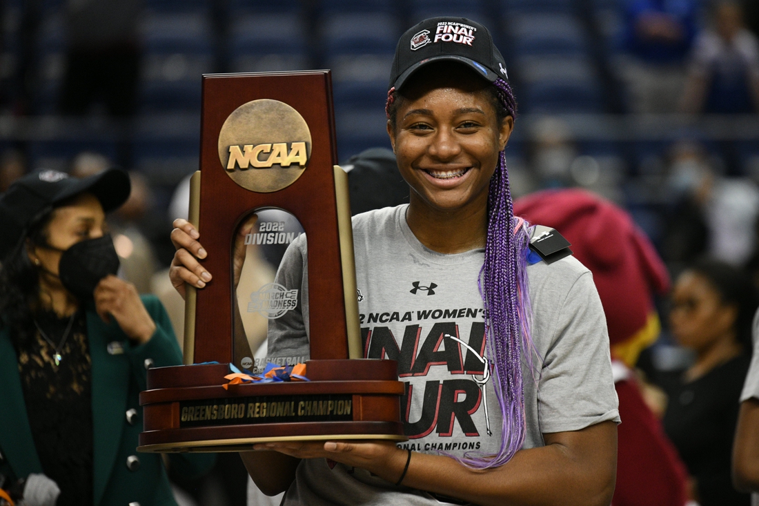The top-seeded Gamecocks (33-2) became the first team to reserve a spot in the tournament’s Final Four, reaching this point for the fourth time in the last seven tournaments. They’ll meet either Louisville or Michigan in Friday night’s national semifinals in Minneapolis.