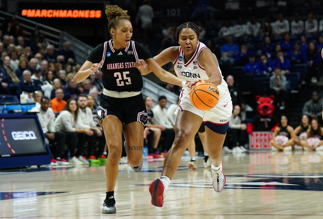 Crislyn Rose had seven points to lead Arkansas State (21-11). Wynter Rogers scored six. Connecticut burst to a 34-5 lead at the end of the first quarter. Arkansas State shot 17.1 percent (12 of 70) from the field and 15 percent (6 of 40) from 3-point range.