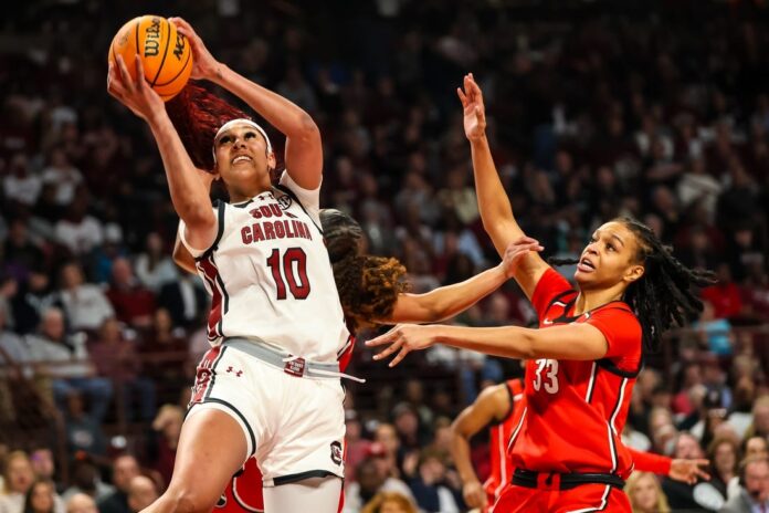 Led by Kamilla Cardoso’s 16 points and 16 rebounds, No. 1 South Carolina rallied from a seven-point halftime deficit to take down Georgia 70-56 on Sunday in Columbia, S.C., keeping its perfect record intact.