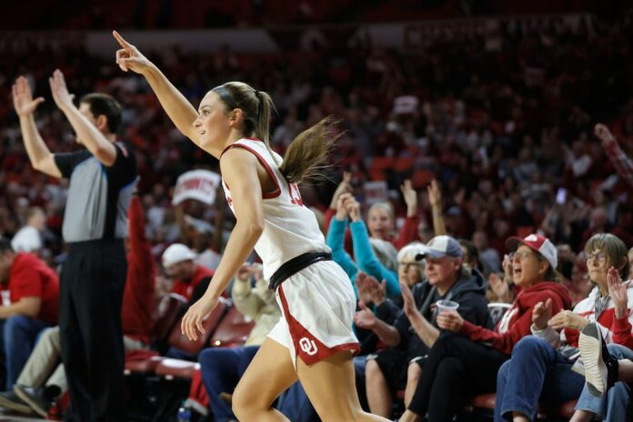 Madison Booker powered Texas with 26 points, eight rebounds and seven assists. Shaylee Gonzales and Taylor Jones each hit for 10 points in the Longhorns’ final Big 12 regular-season meeting with Oklahoma. Both programs will join the Southeastern Conference next season.