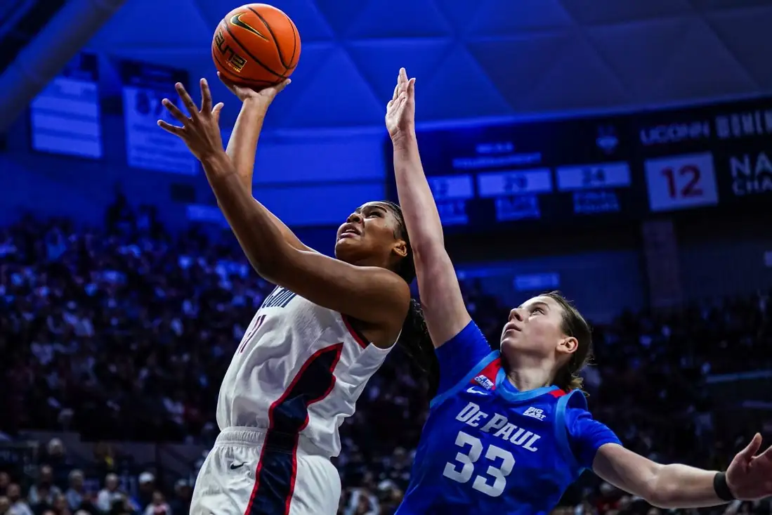 Sarah Strong compiled 20 points, five rebounds, five steals and four assists in just 17 minutes and No. 1 UConn routed DePaul 102-35 on Sunday in Storrs, Conn.